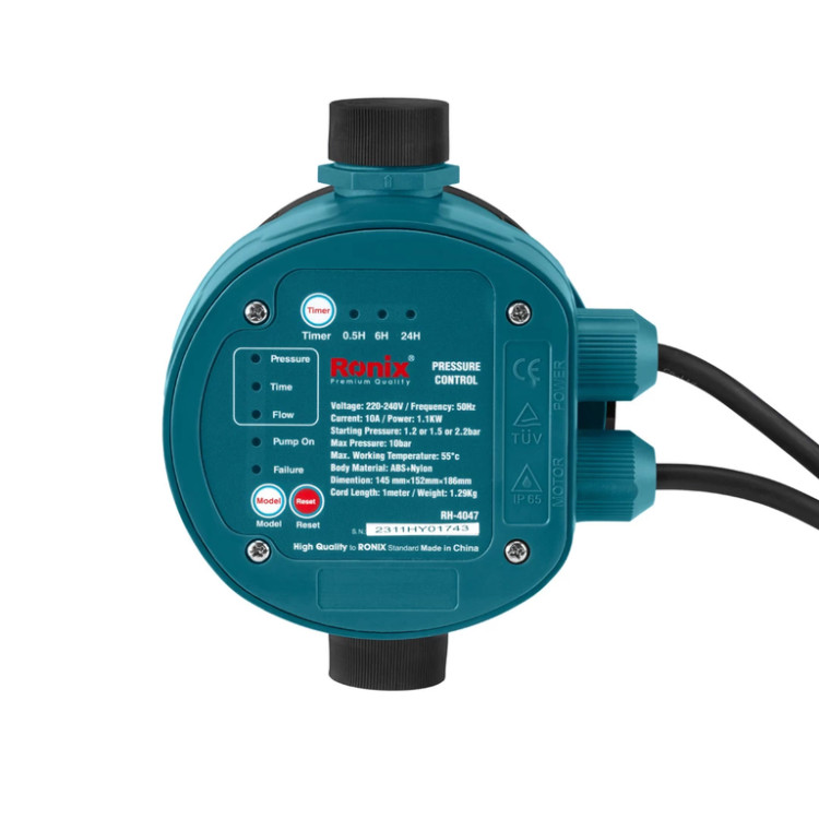 ست کنترل پمپ آب رونیکس مدل RH-4047، راهکاری هوشمند و کارآمد برای کنترل فشار و عملکرد پمپهای آب خانگی است. این دستگاه با طراحی مدرن و ساختار مقاوم از جنس پلیمر تقویتشده ABS و نایلون، جایگزین مناسبی برای سیستمهای سنتی کنترل پمپ محسوب میشود و نیاز به کلید فشار، منبع تحت فشار و سایر اجزای جانبی را برطرف میکند.