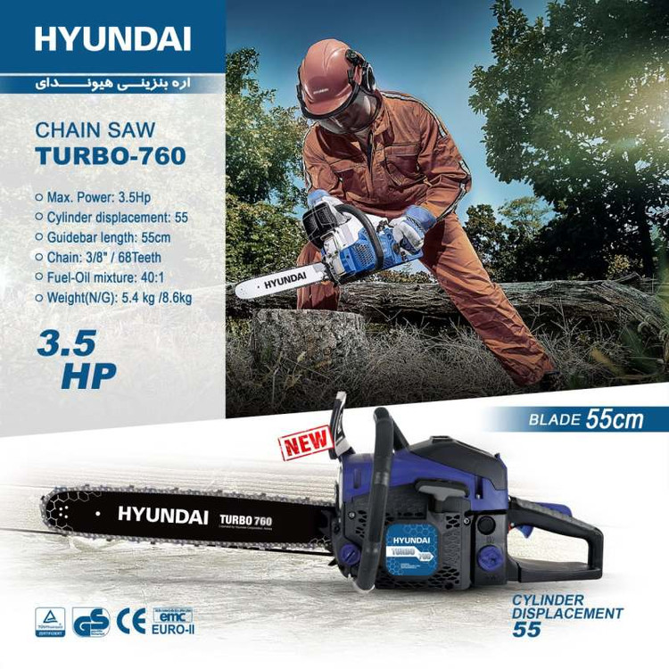اره بنزینی هیوندای مدل توربو 760 یکی از پرقدرت ترین و بهترین اره موتوری های موجود در بازار است. این اره موتوری دارای کیفیت بسیار عالی و عملکرد فوق العاده در کار می باشد. سایز تیغههای این دستگاه بسته به نوع کارکرد، بین 35 تا 85 سانتی متر برای هرس کردن درختان و زدن شاخ و برگ و 40 و 45 سانتی متر برای قطع درختان کاربرد دارد.